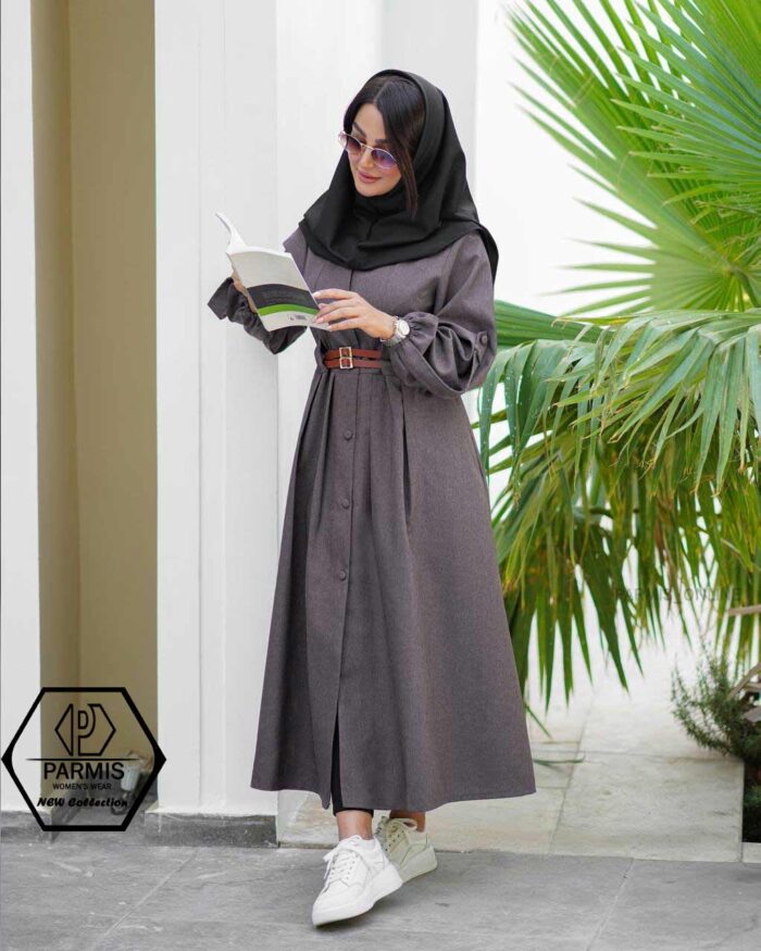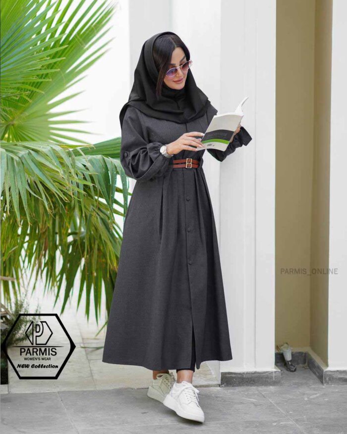 مانتو بلند دو کمربندی مدل کمند کد ۱۵۳